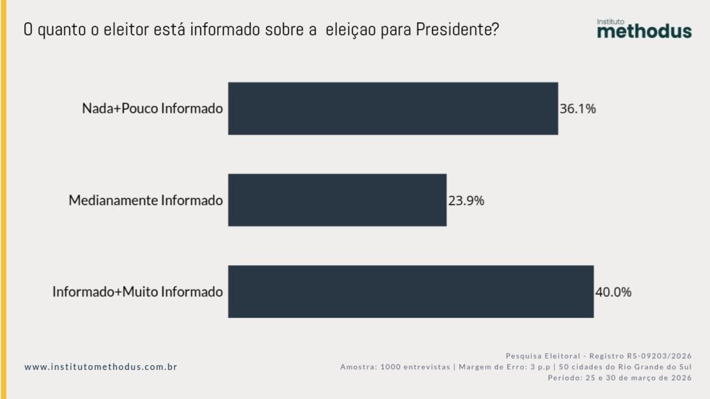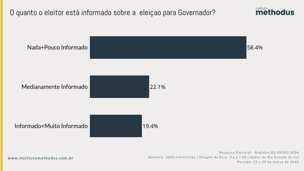 A última pesquisa eleitoral sobre a disputa no Rio Grande do Sul, divulgada pelo Instituto Methodus, investigou o nível de atenção, ou desatenção, do eleitor em relação às eleições no estado.
